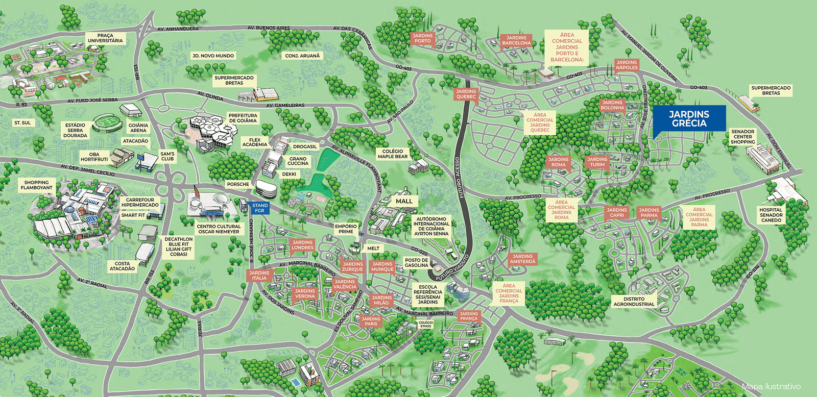 Com espaço feirinha, academia, quadras de tênis, quadras de areia, campo society, piscina adulta e infantil, espaço kids, pet place e muito mais!